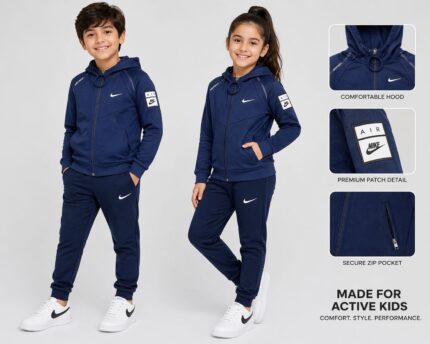 SA JBS350659 Nike Air Zip Hoodie: A bright colours, full-zip fleece hoodie. Key features highlighted include a comfortable hood, a premium “Air Nike” logo patch on the sleeve, and secure zip pockets
