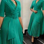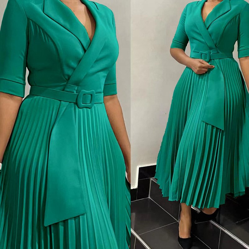 L51 Amazon New Fashion Export Women’s Ol Suit Collar Fashion Strap Waist Pleated African Dress