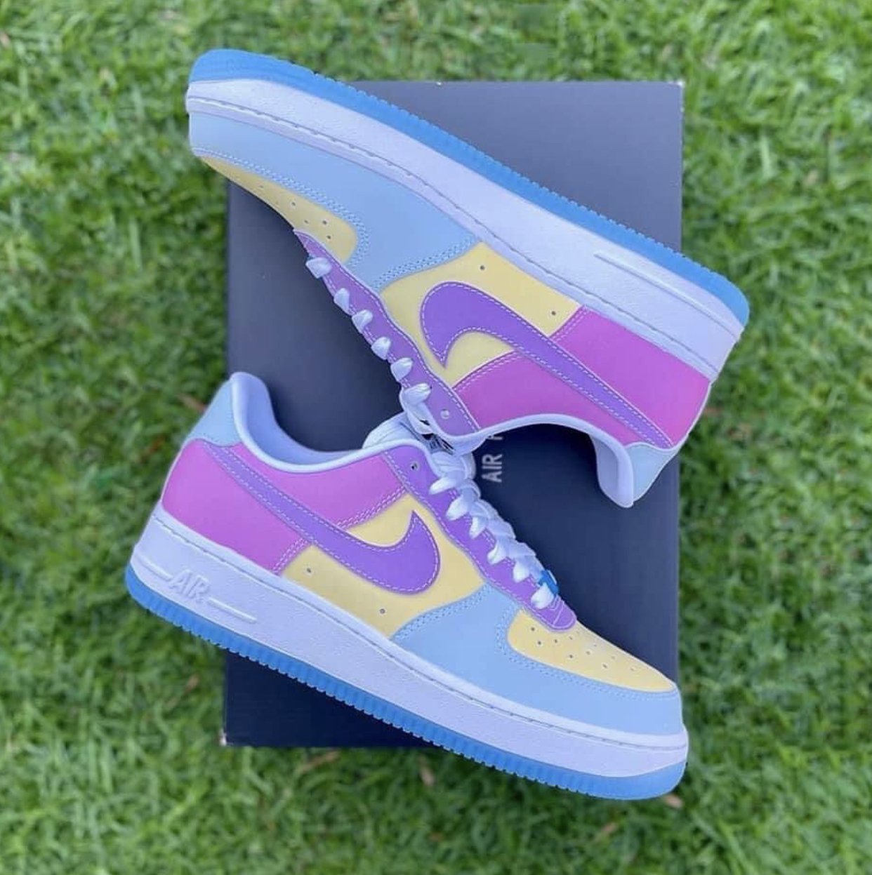 SA DB TF0001 Nike Air Force 1 ’07 LX “UV Reactive”. They feature a special sun-activated technology where the leather upper, which typically appears white or in pastel shades indoors, changes into a multi-colored palette (including shades of pink, yellow, and blue) when exposed to UV light. PAXi Free courier nation wide