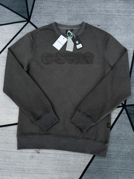 JzYkb350650 Logo Sweater by G-Star RAW. These sweatshirts feature a ribbed crew neckline, ribbed cuffs and hem, and a graphic "G-STAR" print with a distressed effect on the front