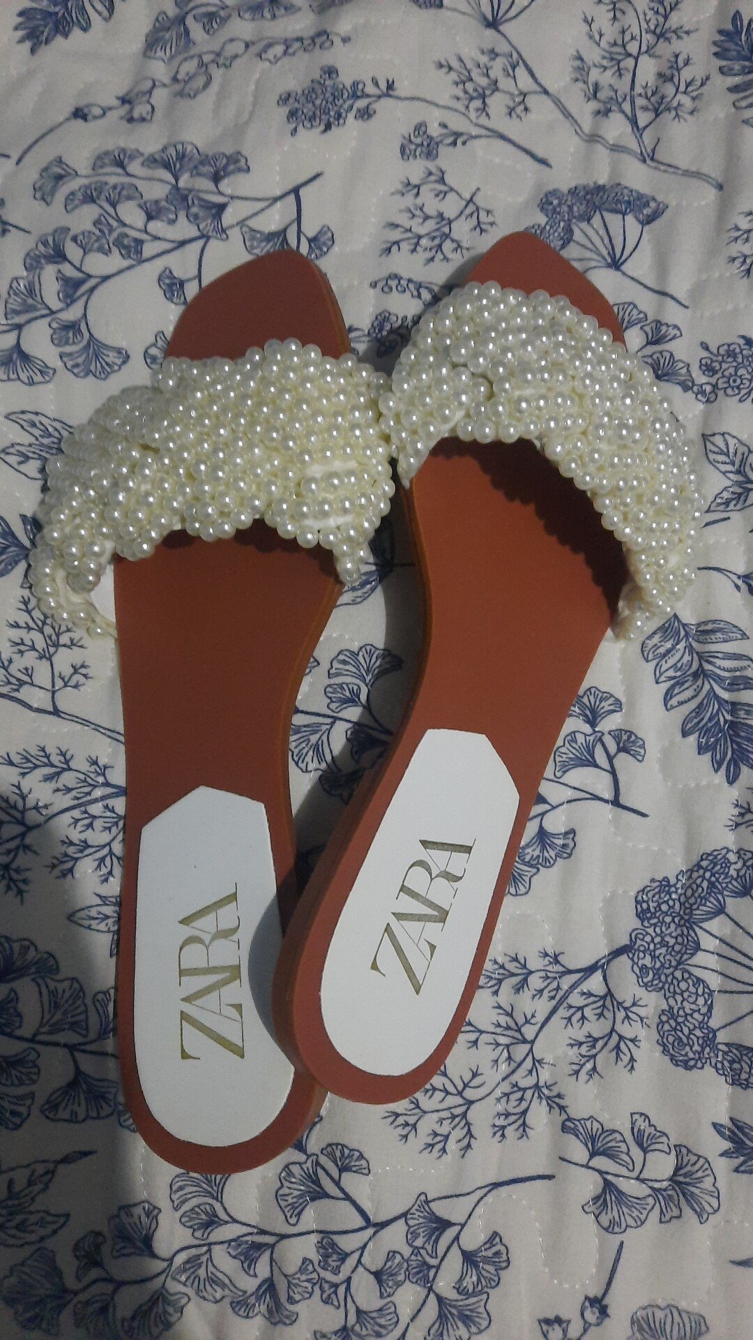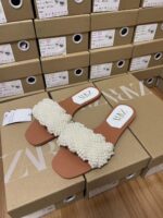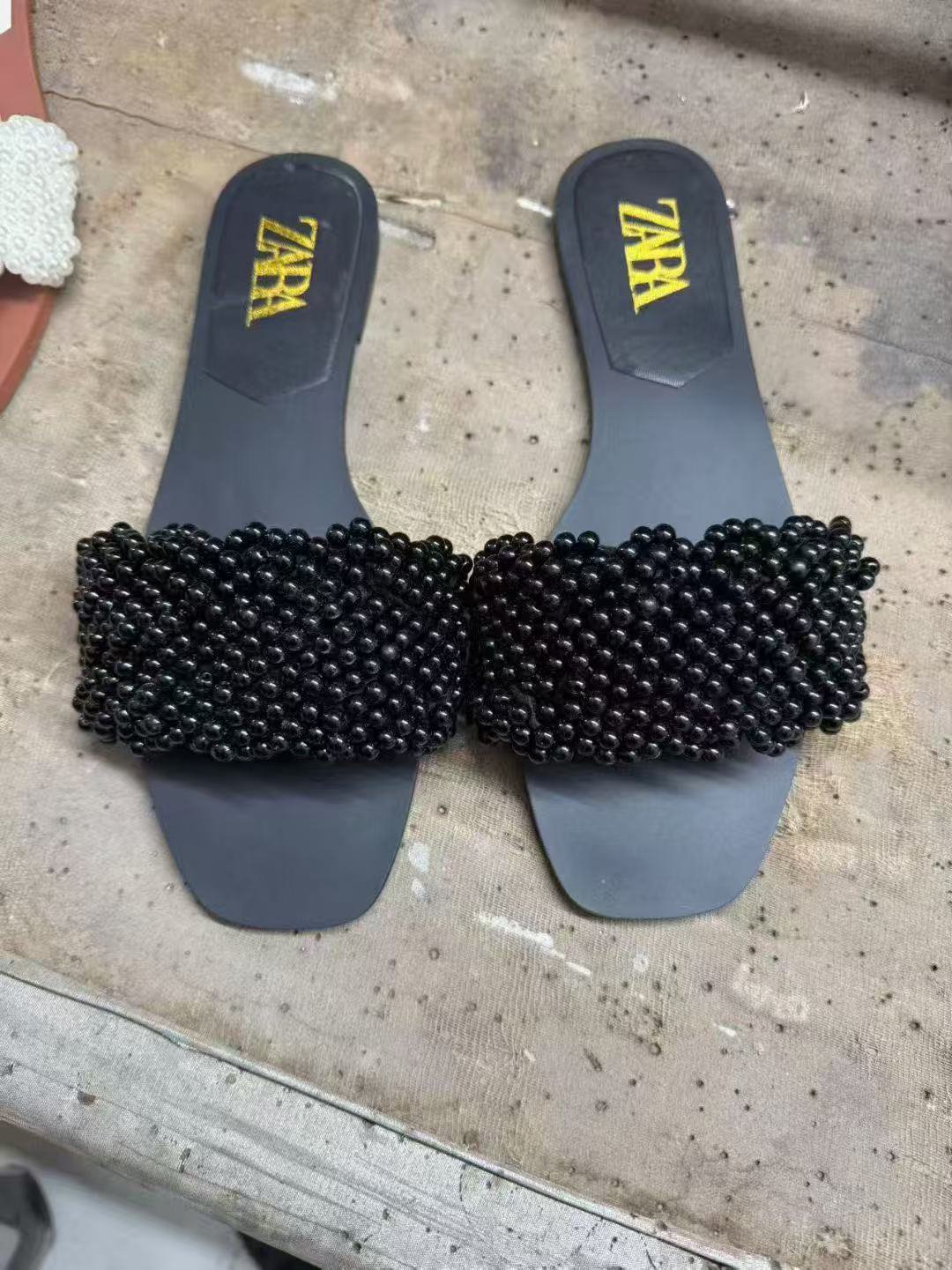 Summer ZARA SANDALS Women’s Shoes Faux Pearl Inlaid Half Slippers Low Heel Open Toe Casual TWO COLOURS INSTOCK